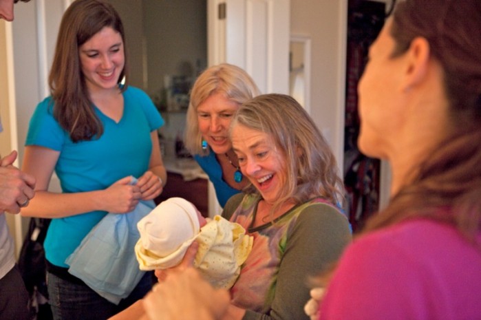 i am a firm believer that labor is not just a physical thing but a total mental and spiritual thing as well. if you know me i will put so much emphasis on the mental/spiritual aspect rather than physical. well anyways, as soon as i heard how far along i was my contractions immediately got closer together (about 4-5 minutes apart). crazy how our minds and bodies work. so things were picking up quickly. i had planned to use my tub like i did with miss P but i never felt the need since walking around was doing the trick. i had one of my favorite pandora stations playing throughout the house, “explosions in the sky,” and was just walking around chatting with others and still texting people updates. by this time i had the mister, mother in law, midwife, two midwife apprentices, and a dear friend of mine with her daughter (buddies with miss P) over at the house doing their thing.